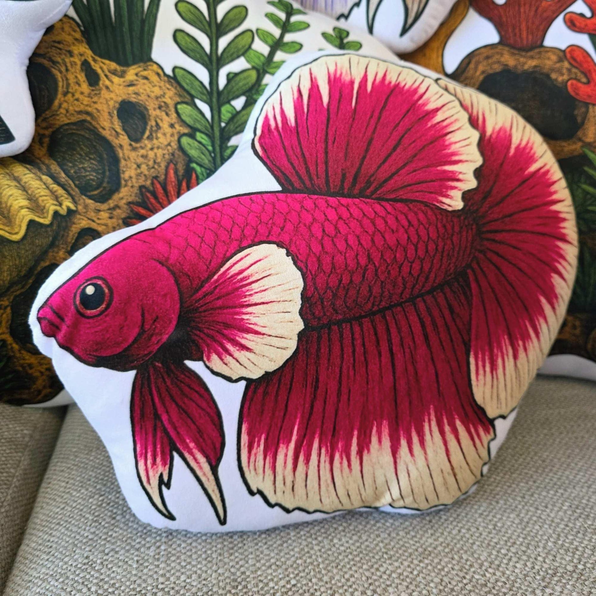 Maroon Longfin Betta Fish-Shaped Cushion 40cm | FAWNE