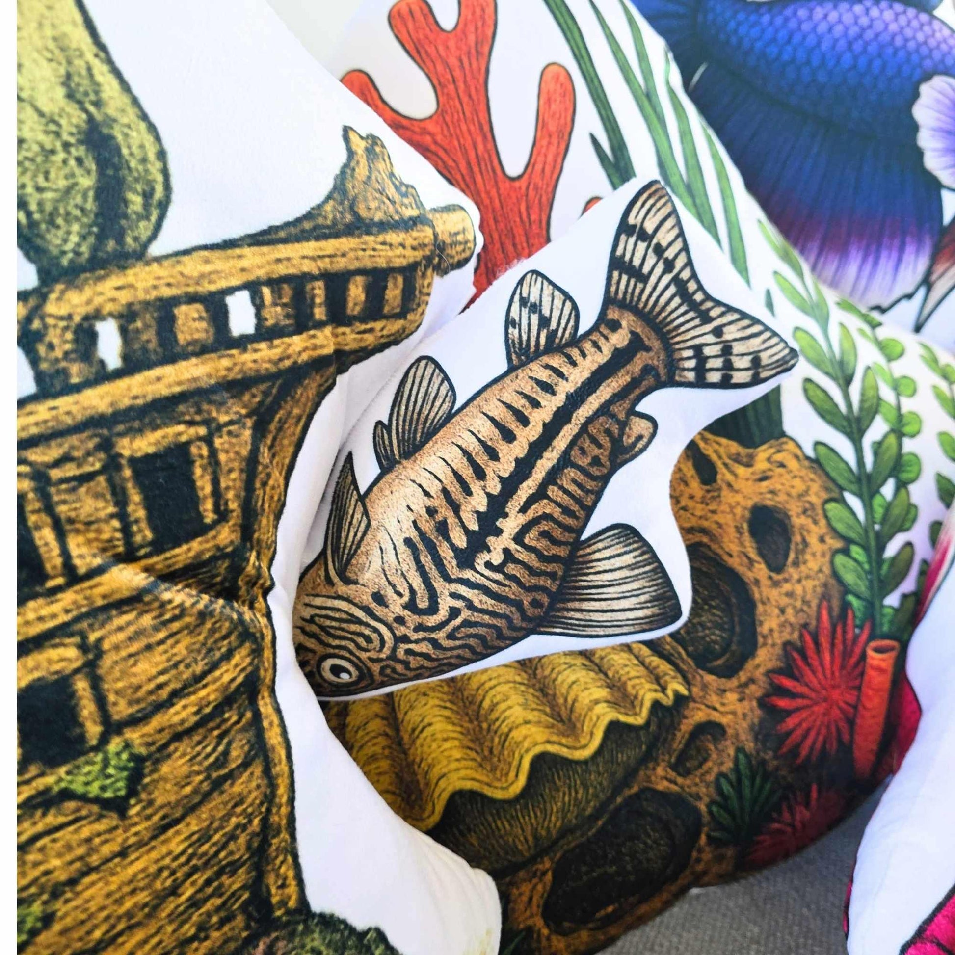 Bring a little joy to your space with this adorable corydoras cushion, inspired by the gentle, playful personality of the aquarium favourite. Printed in high-resolution on soft, durable polyester and shaped to match its rounded silhouette, it features FAWNE’s signature vintage illustration style and double-sided mirrored artwork. A soft poly-cotton filling makes it perfect for lounging, styling, or gifting. Designed in small batches as part of the Betta Friends capsule collection.