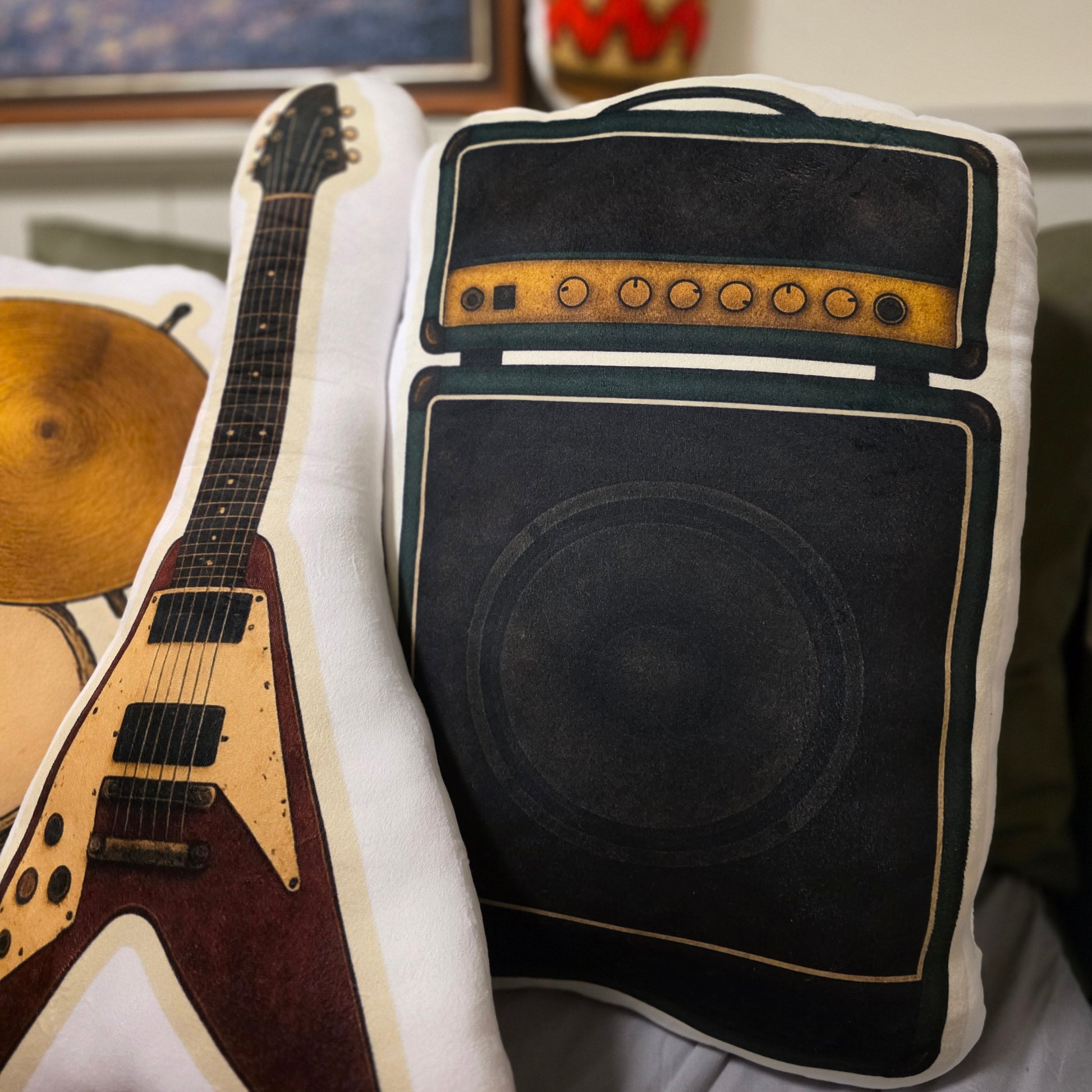 Turn up the comfort. Each Setlist cushion is shaped to match the iconic silhouette of its instrument, illustrated with textured, retro-warm detailing. Soft, durable, and sized for the perfect couch companion — whether you're on the sofa, in the studio, or drifting into daydreams backstage.