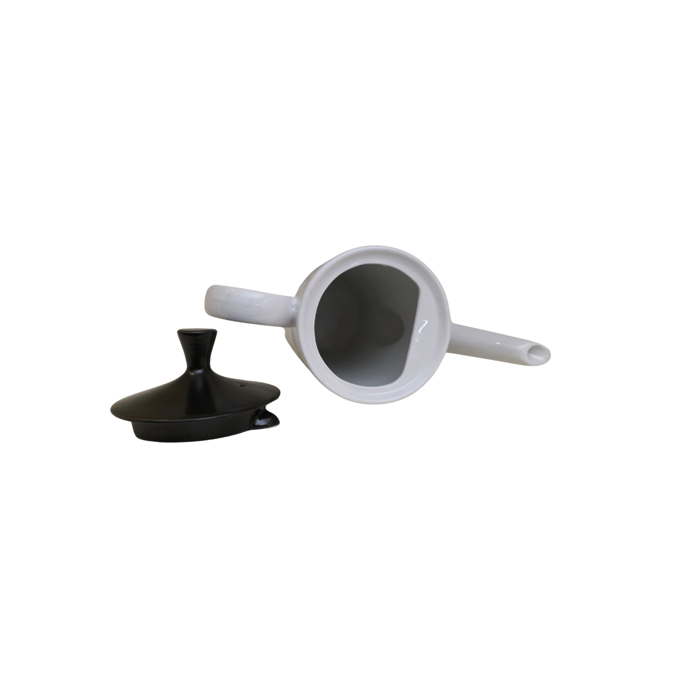 A tall English ceramic coffee pot decorated with black floral illustrations in a refined, modernist style. Its elongated silhouette and graceful handle reflect classic British mid-century design. Perfect as a functional pot or a display accent for a vintage-inspired kitchen or tea station.